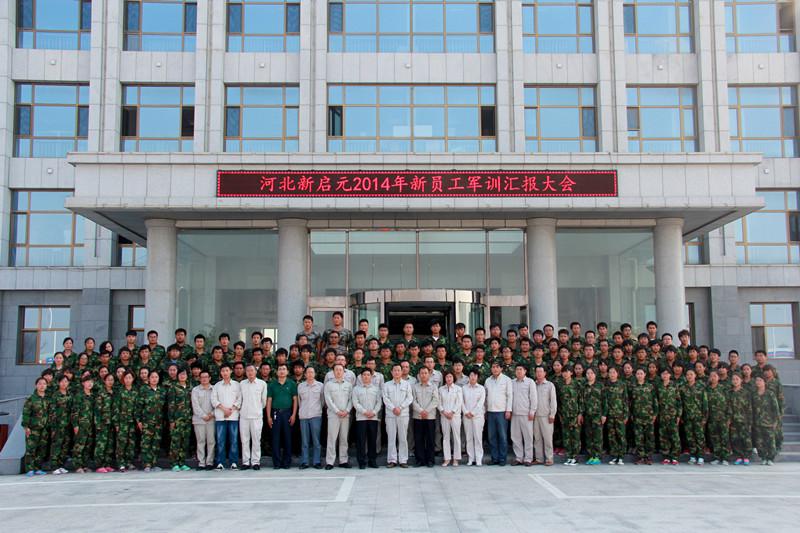 新啟元公司總經(jīng)理喬樹華就公司情況作簡要介紹并提出了提升自我,學(xué)而不輟;認(rèn)真踏實(shí),勤奮工作;齊心協(xié)力,團(tuán)結(jié)共贏的具體要求。集團(tuán)公司副總經(jīng)理、新啟元公司董事長李志剛宣布新員工軍訓(xùn)匯報(bào)演出開始,120名新員工對著中捷石化集團(tuán)的旗幟鄭重宣誓。