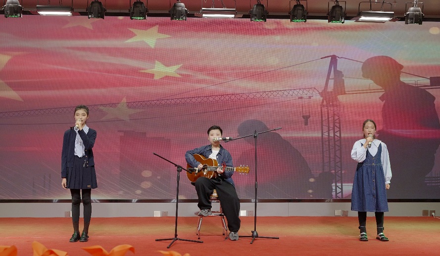 吉他彈唱《光輝歲月》:王宥希(華鑫洺源公司王猛之女)、閆鈞博(新欣園公司呂河燕之子)、孟凡藝(新欣園公司王昕之女)