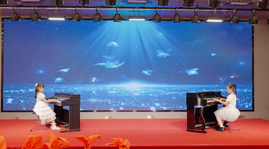 電鋼琴《初心與愛(ài)同頻》:張璟瑜(華鑫洺源公司張路之女)、鄭若溪(華鑫洺源公司鄭東昊之女)